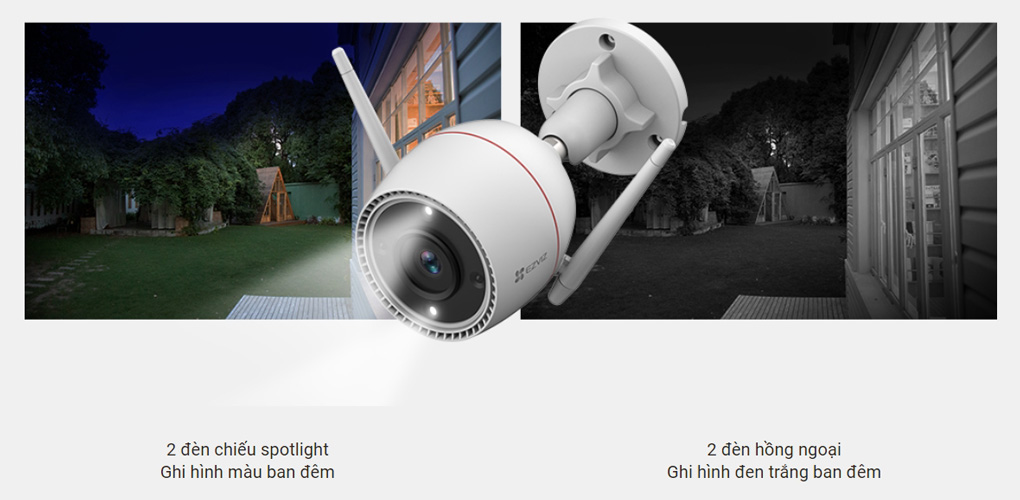 - Hỗ trợ 3 chế độ ban đêm: màu, hồng ngoại, thông minh (EZVIZ)