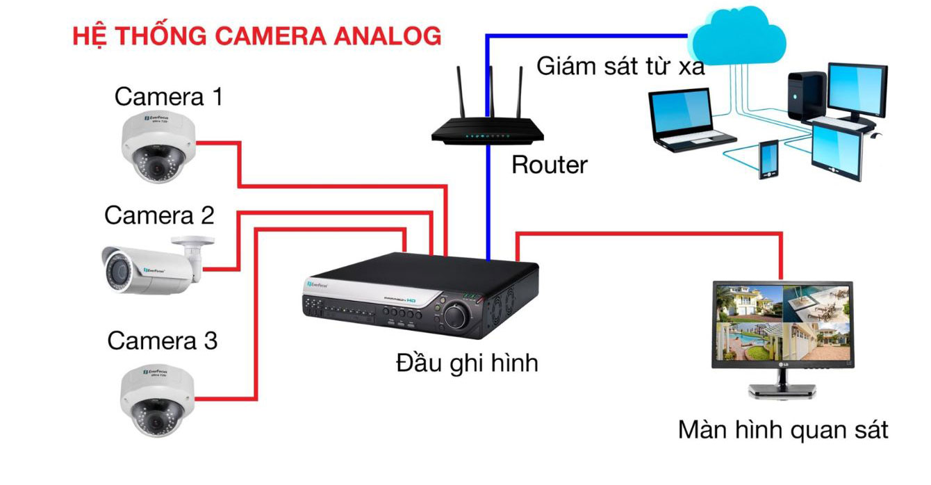 Hệ thống camera giám sát là tập hợp các thiết bị ghi hình và truyền tải hình ảnh, cho phép người dùng theo dõi trực tiếp hoặc xem lại từ xa qua điện thoại, máy tính.